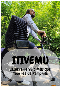 Cycliste avec son accordéon aux épaules, Pamphile est bien connu des nantais et il n'en est pas à sa première escapade ! Le matin nous roulerons au rythme d'une balade, et le soir ce sera une prestation musicale, à l'étape, dans un lieu partenaire. Que vous soyez cycliste ou juste amateur.ice de musique, ou les deux, vous pouvez nous rejoindre pour l'aventure et/ou les concerts!